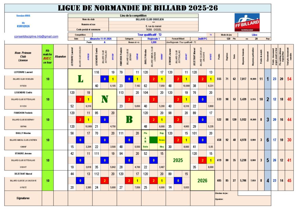– Poule A – Oissel (6 joueurs)