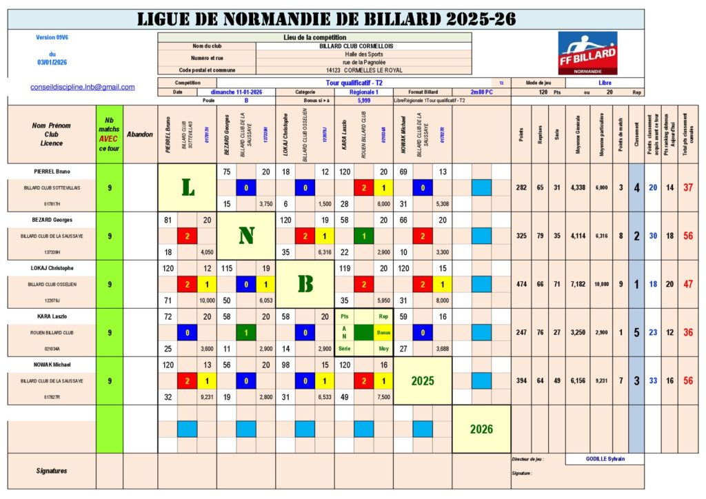 Résultats des Tournois, vous trouverez ici toutes les informations concernant les rencontres sportives auxquelles participe le Billard Club Sottevillais.