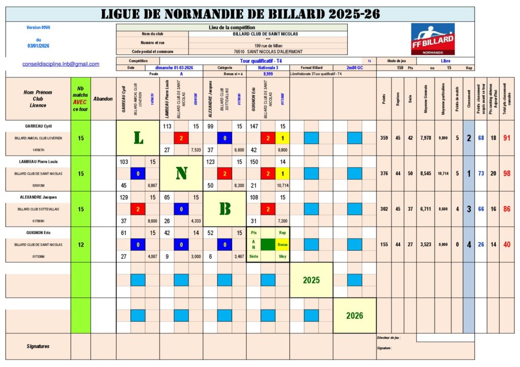 Le pdf ici : FM T4 Libre N3 St Nicolas Poule A 01.03.2026