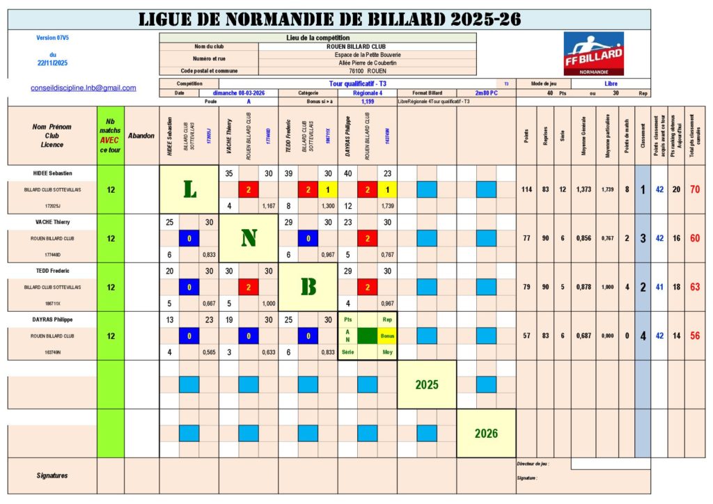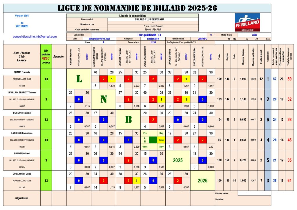 Résultats des Tournois, vous trouverez ici toutes les informations concernant les rencontres sportives auxquelles participe le Billard Club Sottevillais.